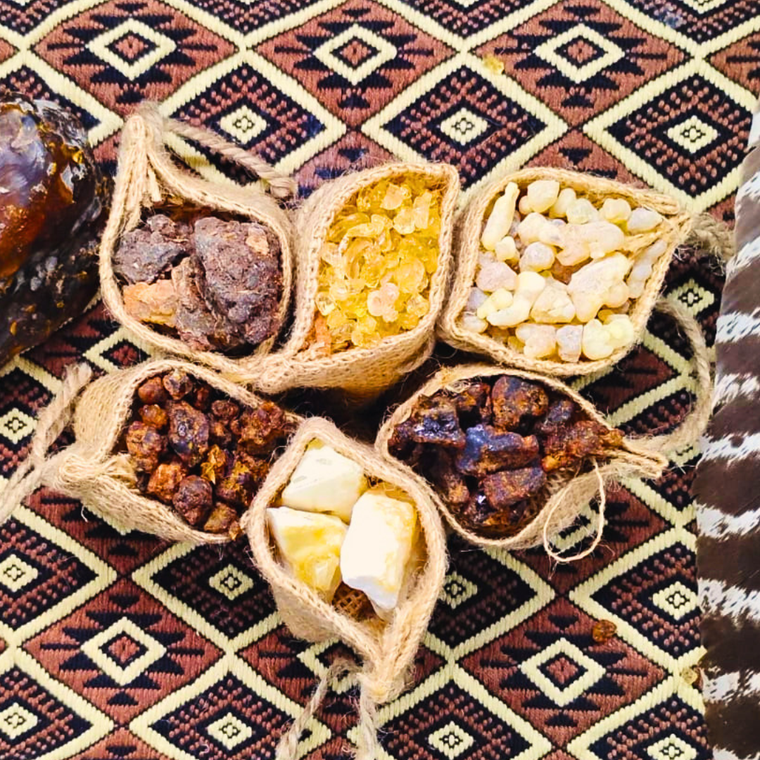 Our Altar Smudging Resin Sampler is crafted for those who seek a deep, versatile connection to traditional purification practices. This curated set includes six powerful resins: White Copal from Mexico, pure Frankincense, sacred Myrrh, calming Sandalwood, earthy Patchouli, and vibrant Dragon's Blood. Each resin brings unique properties and aromas that cleanse spaces, enhance meditation, and elevate spiritual rituals.